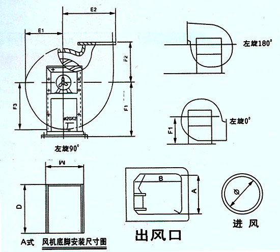 SY-731-Ⅱ型PP離心風機為全塑無鋼支座,大機型為8A號,內(nèi)機出口360°任意轉(zhuǎn)向,進出風口按照SY-731-Ⅰ型表,安裝尺寸由我廠另提供。