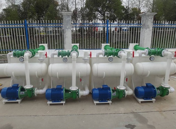 聚丙烯PP真空機組體積小,結構緊可移動,噪音低,能耗低便于綜合利用。水汽串聯噴射真空機組,耗氣量小可獲得更高的真空度,工作穩定,使用方便。在安裝使用前,須仔細檢查各部位緊固件是否松動,若有松動須校正擰緊。開機前水池須加滿水,打開泵進口閥,嚴禁脫水空轉及反轉,以防止損壞機封和泵。停機前先放空或真空度降至0.092Mpa以下,然后停機以防真空度過高,倒吸易損壞止回閥,(如止回閥失靈,請打開止回閥蓋,清除雜物)。