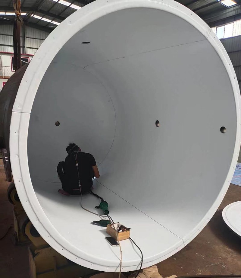 6、噴涂四氟涂層檢查,在噴涂過程中及噴涂完一個罐后,對全部涂層進行檢查,主要檢查有否漏噴,表面是否平整光滑和機械損傷等可見缺陷,然后進行修補。